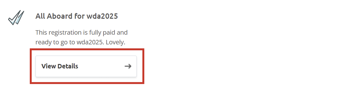 If you have already paid for registration, click "View Details →" on wda2025.exordo.com/registration